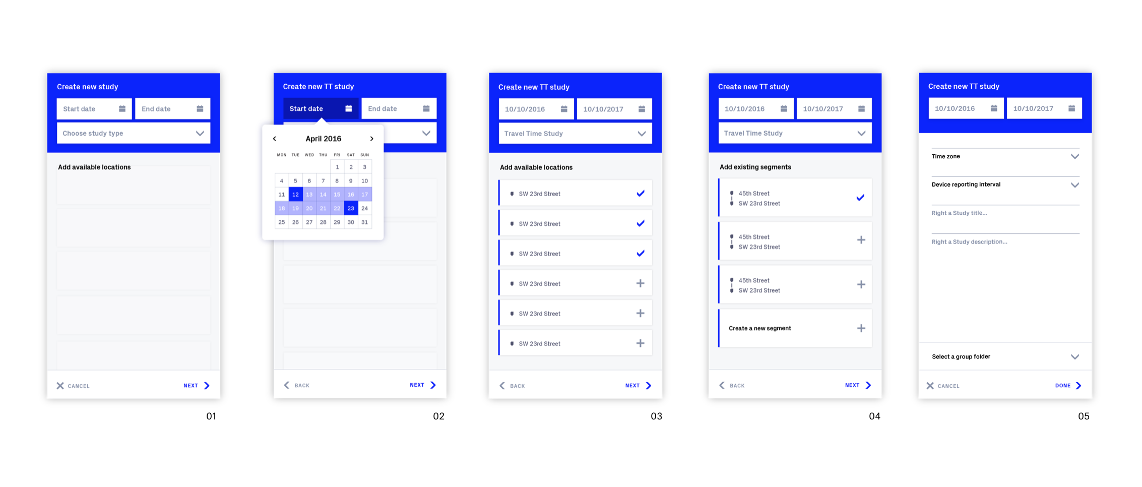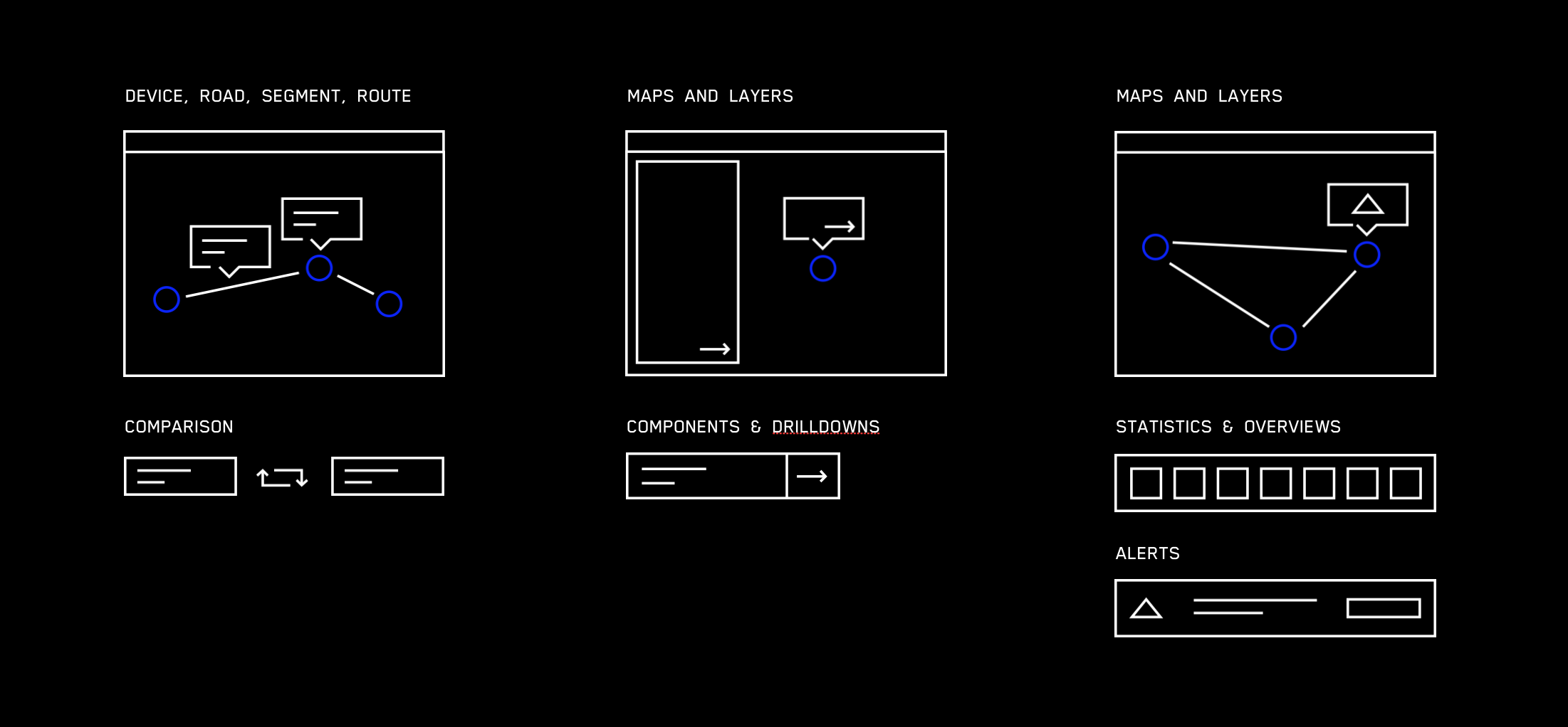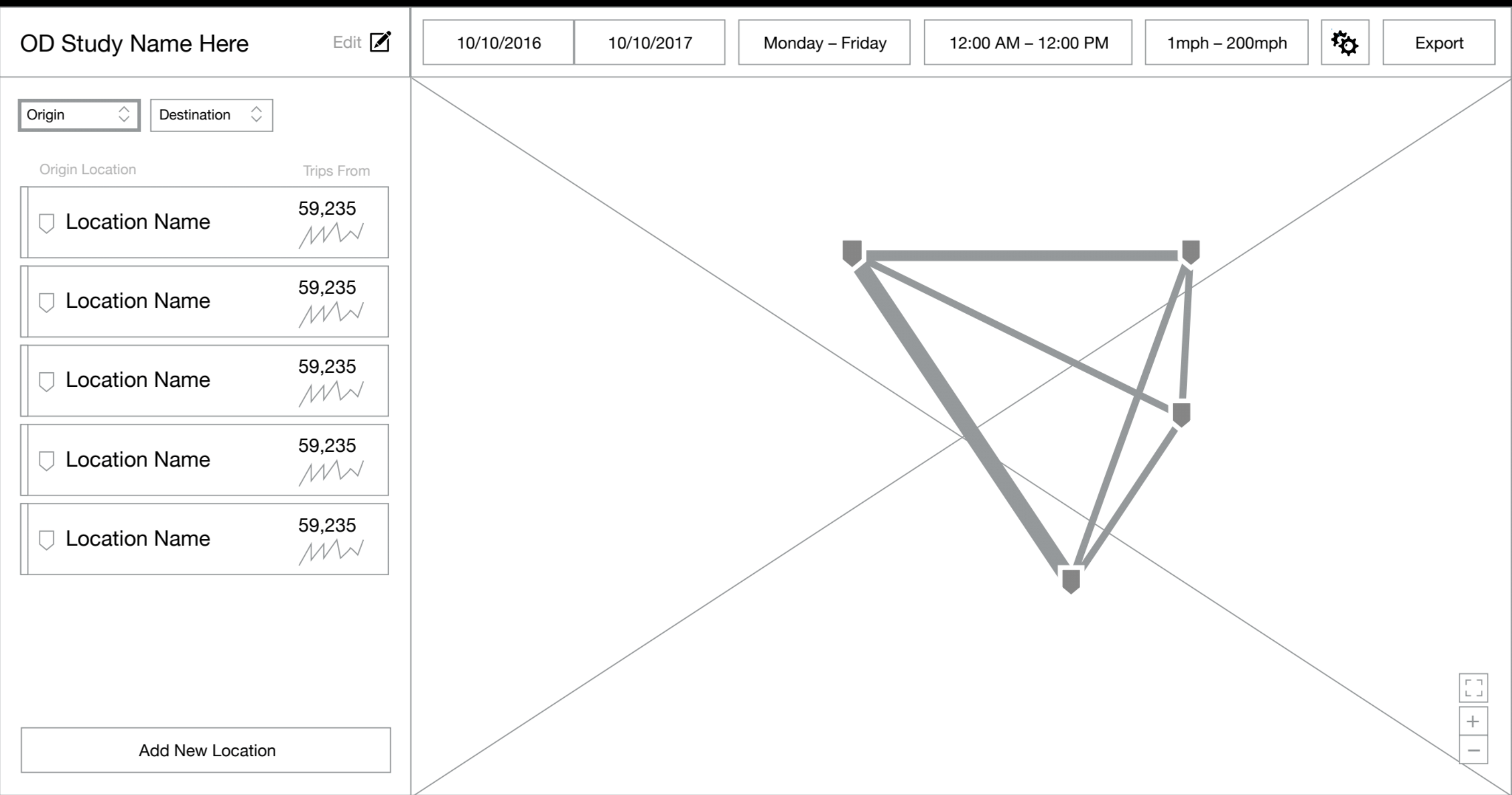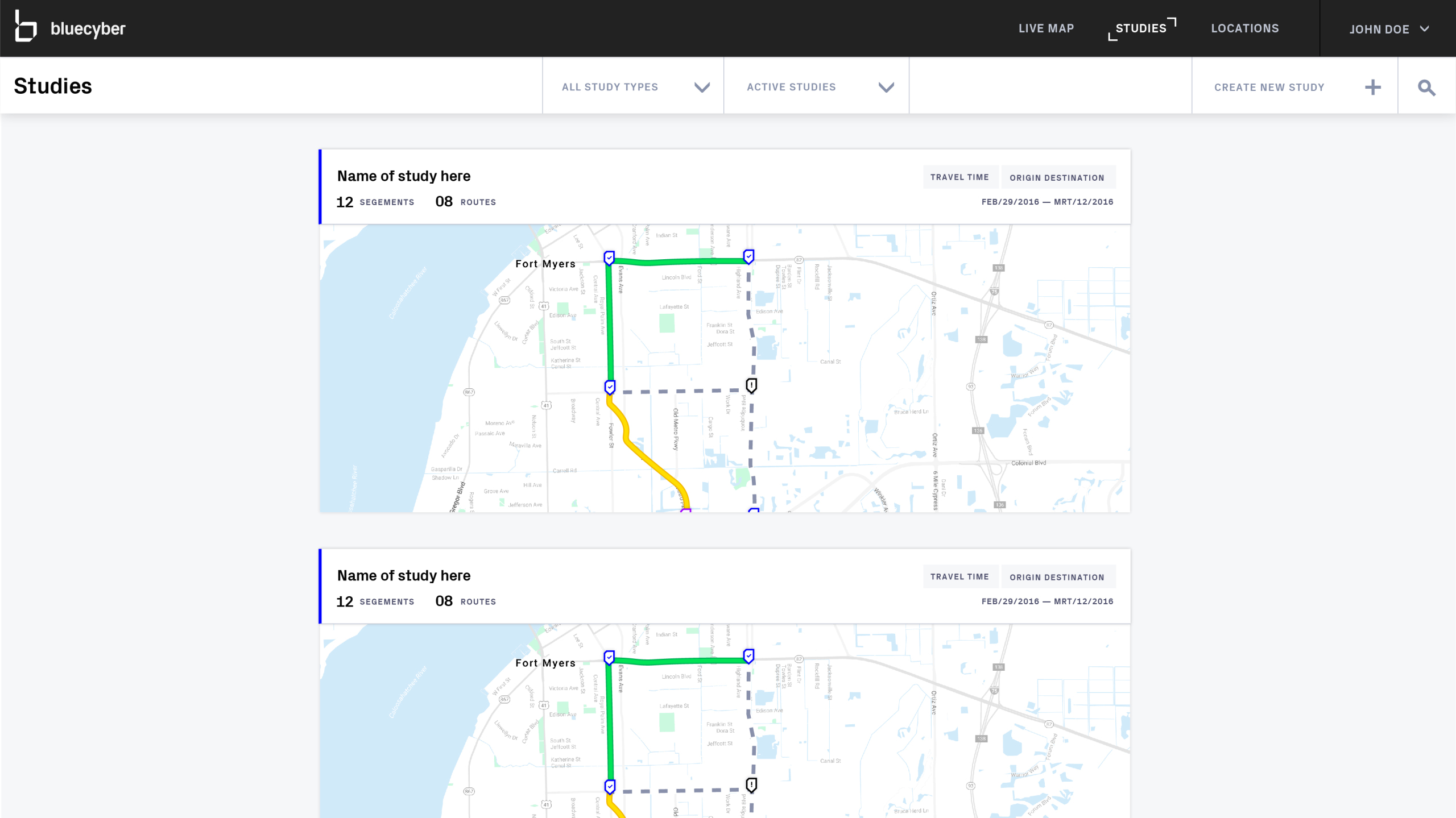 Through our research we mapped out what the complete experience would be for a BlueMac customer. This structure and flow entailed several new features and sections specific to different customer audiences. The three sections consisted of live traffic analysis, traffic studies, and sensor setup and management. With limited budget and time we focused on live traffic analysis and sensor setup and management for the upcoming design and development sprints.