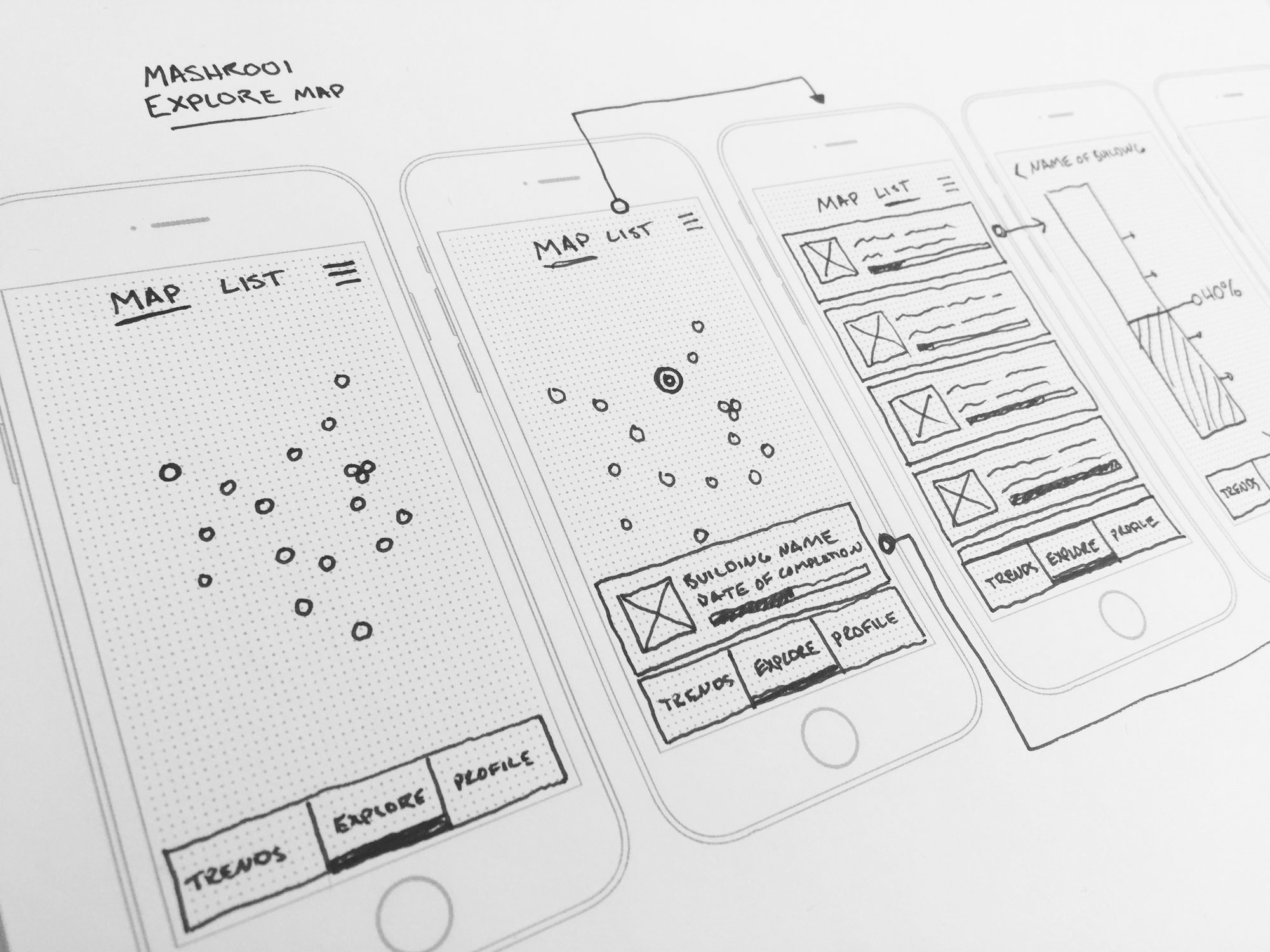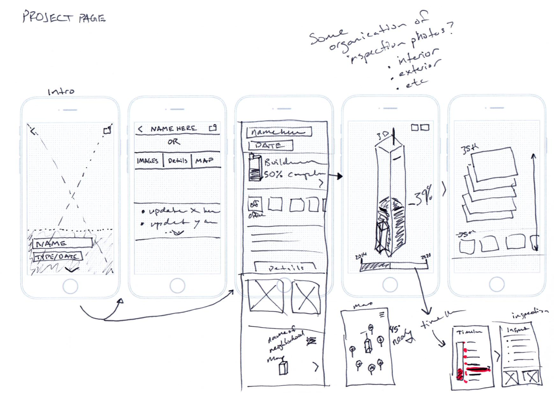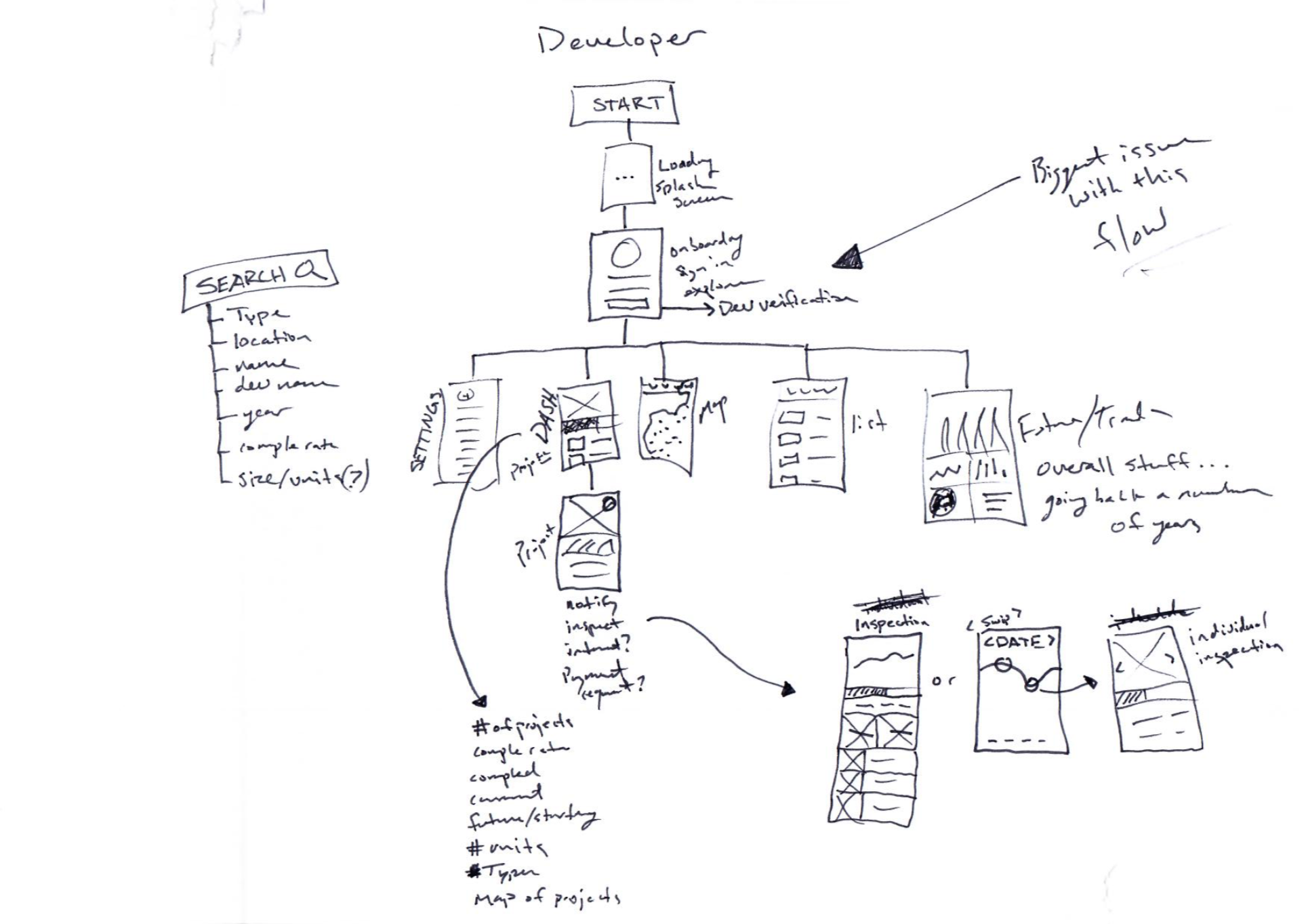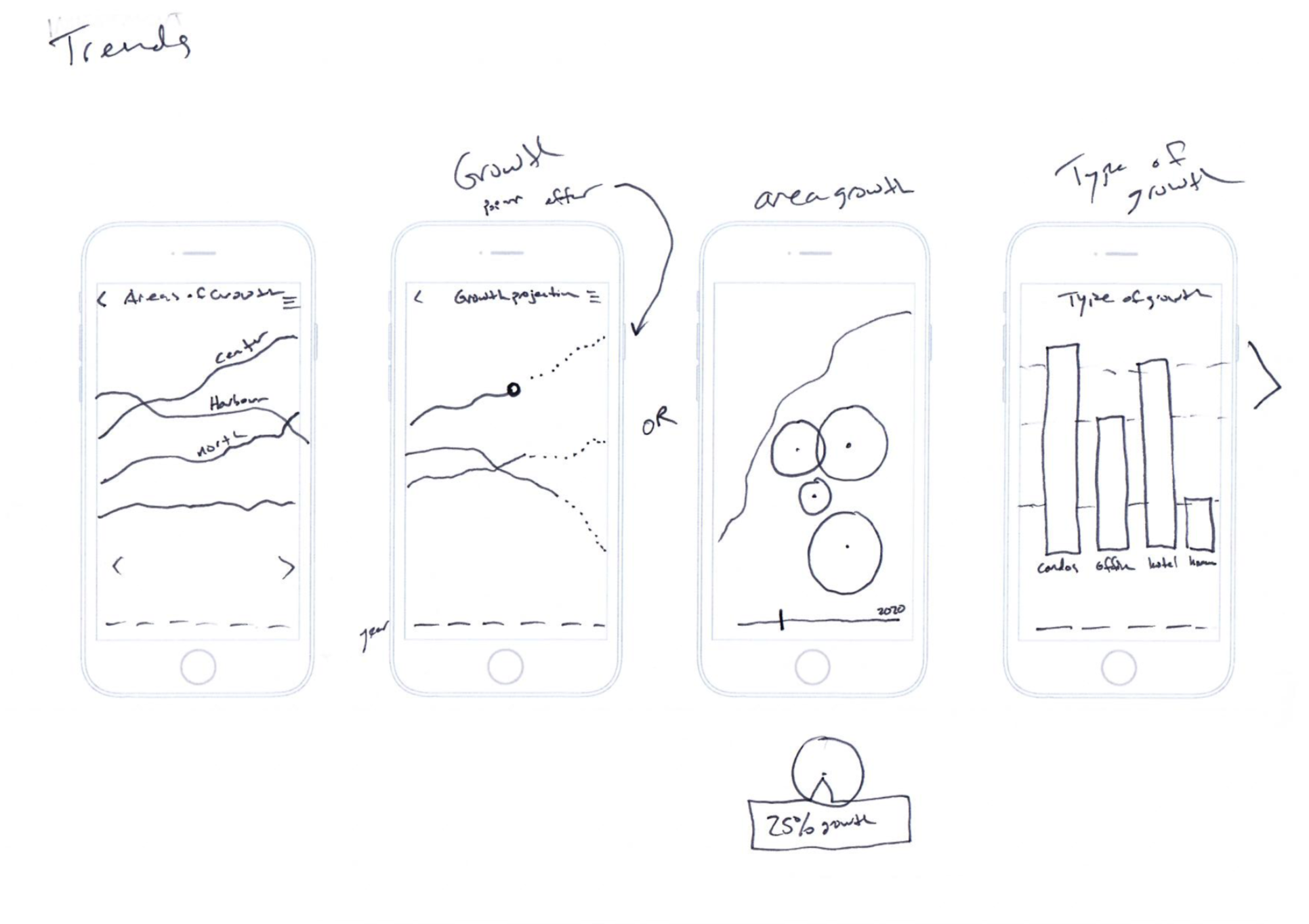 With the app being the first step, I sketched out ideas and opportunities for visualizing real estate data and ways in which we could provide more context and awareness about what we being built in the city.